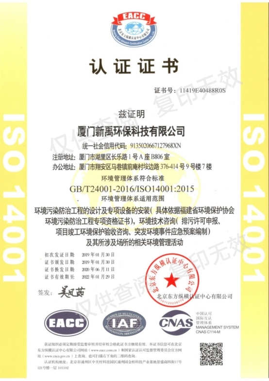 環(huán)境污染防治工程專項(xiàng)資格證書